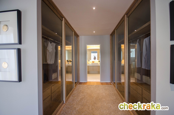 พื้นที่ผนังที่ต่อเติมเพิ่มขึ้นมาทำให้ได้ตู้โชว์ และตู้เสื้อผ้าขนาดใหญ่ขึ้น