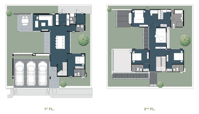 3. แบบบ้าน LIWA - บ้านเดี่ยว 2 ชั้น ขนาดที่ดินเริ่มที่ 80 ตร.ว. ขนาดพื้นที่ใช้สอย 260 ตร.ม. 4 ห้องนอน 5 ห้องน้ำ 2 ห้องนั่งเล่น 1 ส่วนรับประทานอาหาร 1 ห้องครัว สวนนั่งเล่น และ 1 FUNCTIONAL SPACE ที่จอดรถ 3 คัน มีจำนวน 18 หลัง ขนาดความกว้าง 18 เมตร ขนาดความยาว 17.65 เมตร