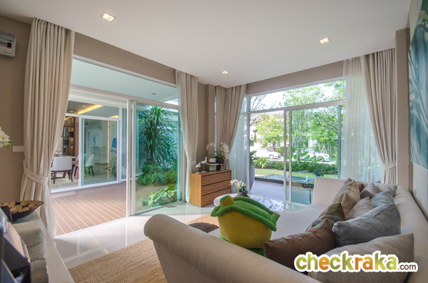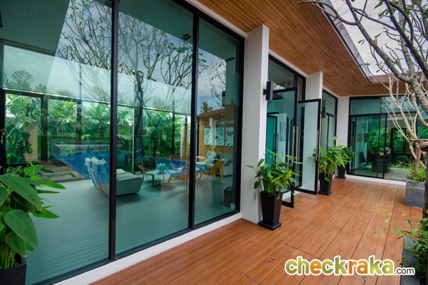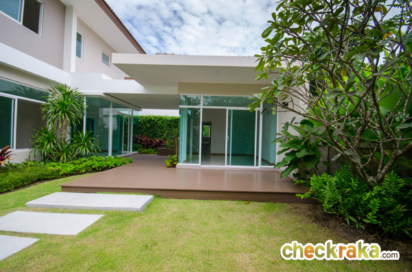 มีหน้าต่างบานเลื่อนขนาดใหญ่ให้ พื้นที่ด้านหลังสามารถวางโต๊ะรับประทานอาหารขนาด 6-8 ที่ได้สบาย