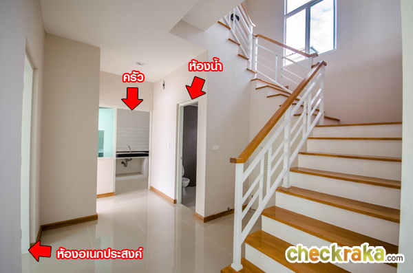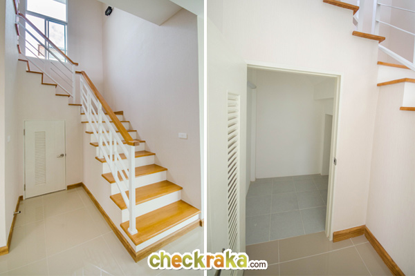 พื้นที่ส่วนนี้ประกอบไปด้วย บันไดทางขึ้นชั้น 2 ห้องเก็บของใต้บันได ห้องน้ำชั้นล่าง ห้องครัว