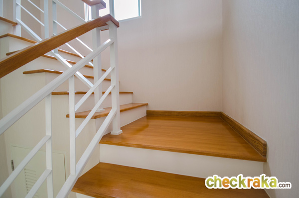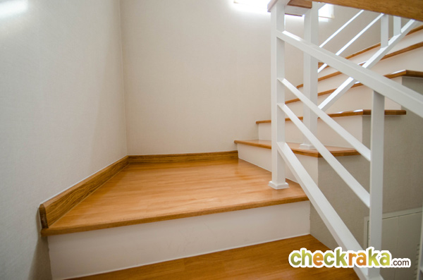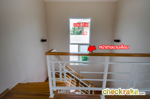 ตรงบันไดมีกระจกรับแสงบานใหญ่ทำให้ตอนกลางวันแสงธรรมชาติ เข้าส่วนนี้ได้โดยไม่ต้องเปิดไฟ
