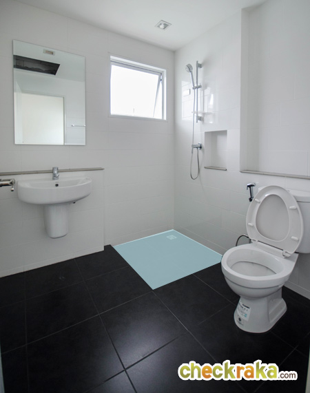 พื้นที่อาบน้ำพื้นจะลดระดับลงไปเล็กน้อย และยังมีบานเลื่อนสำหรับระบายอากาศมาให้ 1 จุด