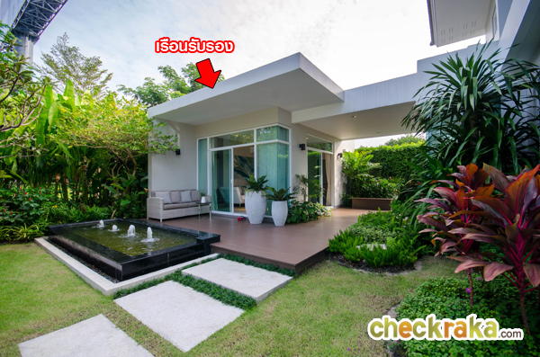 เรือนรับรองที่เชื่อมต่อกับตัวบ้าน เปิดประตูมองวิวสวน
