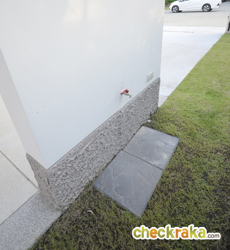 ติดตั้งก็อกน้ำตรงเสาข้างๆ เผื่อจะล้างรถหรือหรือต่อสายยางรดน้ำต้นไม้