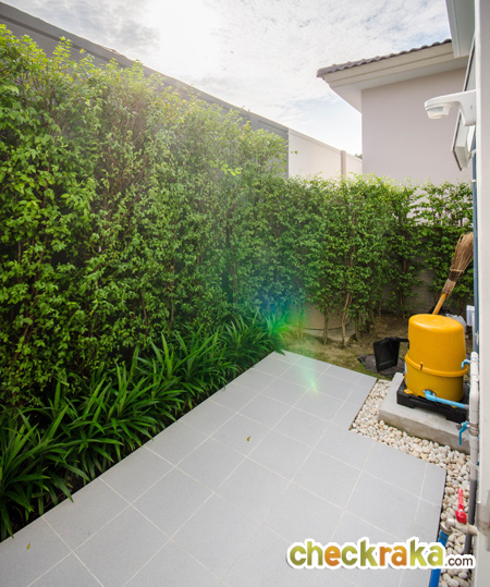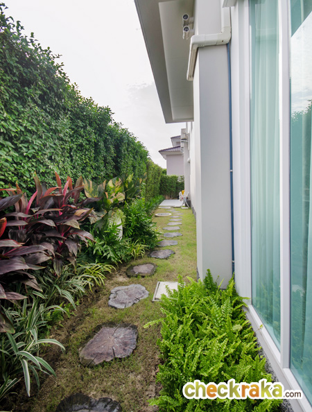 เรามาชมรอบๆ บ้านกันก่อนนะคะ ด้านข้างบ้านฝั่งที่จอดรถจะเป็นห้องแม่บ้าน และห้องน้ำแม่บ้าน