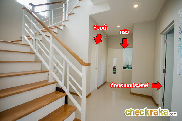 มีประตูทางเข้าจากที่จอดรถให้ เวลาซื้อของเข้าบ้านมาจอดรถแล้วสามารถเข้าบ้านได้จากประตูนี้เลยค่ะ