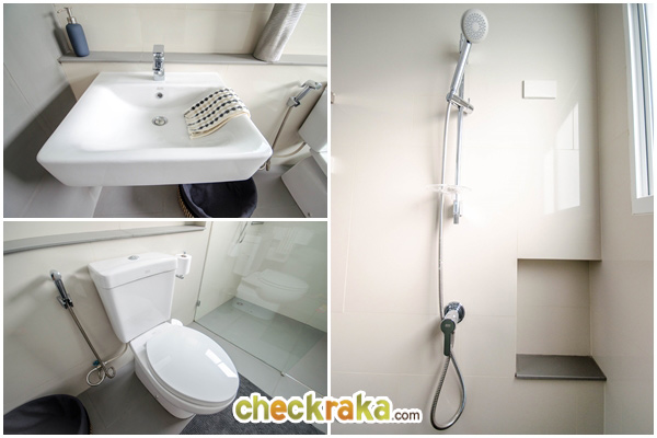 ภายในห้องน้ำมีสุขภัณฑ์ให้ครบ ของ American Standard ทั้งอ่างล้างหน้า โถสุขภัณฑ์ ฝักบัวอาบน้ำ