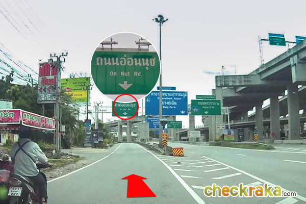 เลี้ยวเข้าช่องซ้าย ไปตามป้ายถนนอ่อนนุช