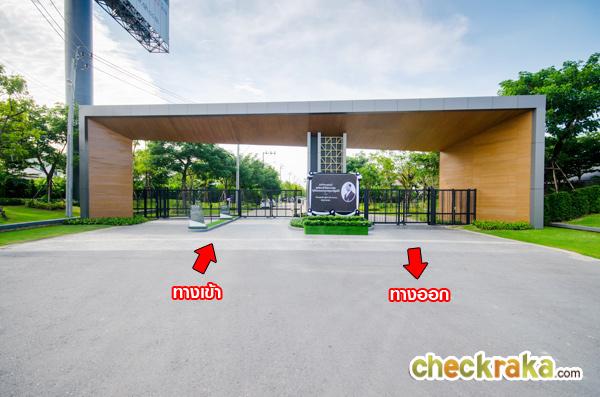 ลงจากสะพานมา จะมองเห็นซุ้มประตูทางเข้าโครงการขนาดใหญ่ตามรูปนี้เลยค่ะ ส่วนด้านบนของซุ้มประตู
