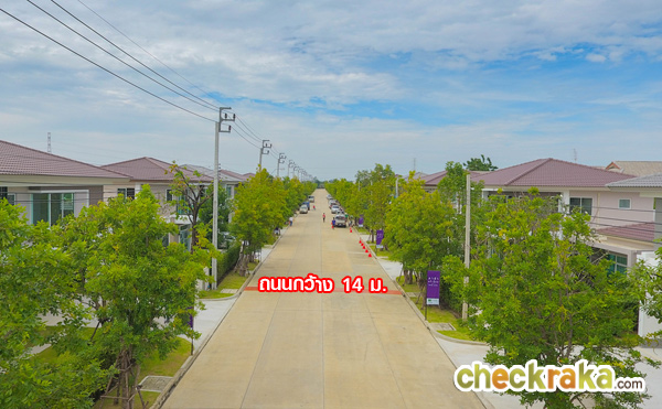 ถนนหลักกว้าง 14 เมตร ไปจนถึงคลับเฮ้าส์ หลังจากนั้นกว้าง 9 เมตรค่ะ