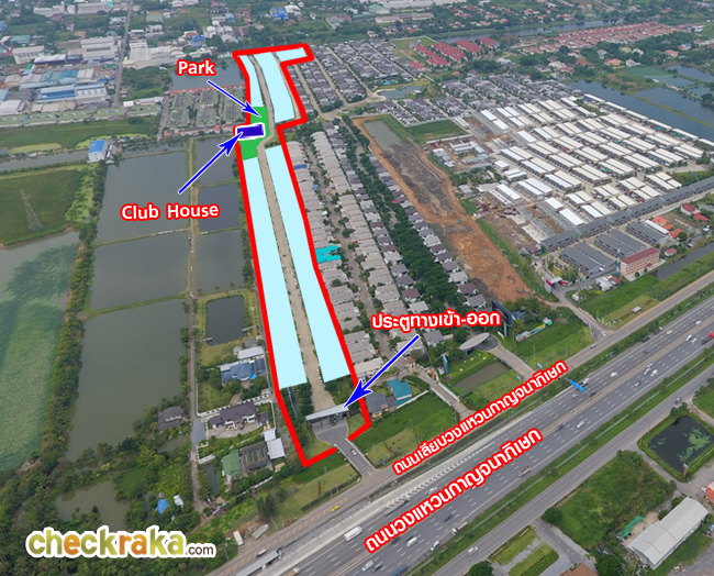 ถนนภายในโครงการ บ้าน คลับเฮ้าส์ สวน และทางเข้า-ออก