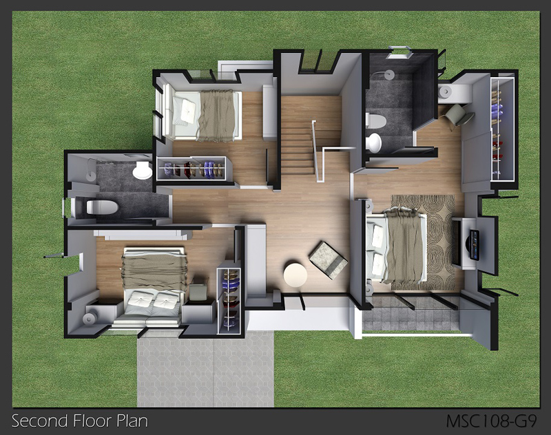 2. Calamus - บ้านเดี่ยว 2 ชั้น ขนาดพื้นที่ใช้สอย 233 ตร.ม. 4 ห้องนอน 4 ห้องน้ำ โถงพักผ่อนชั้นบน พื้นที่นั่งเล่น ส่วนรับประทานอาหาร 1 ห้องครัว ห้องแม่บ้านพร้อมห้องน้ำ ที่จอดรถ 2 คัน