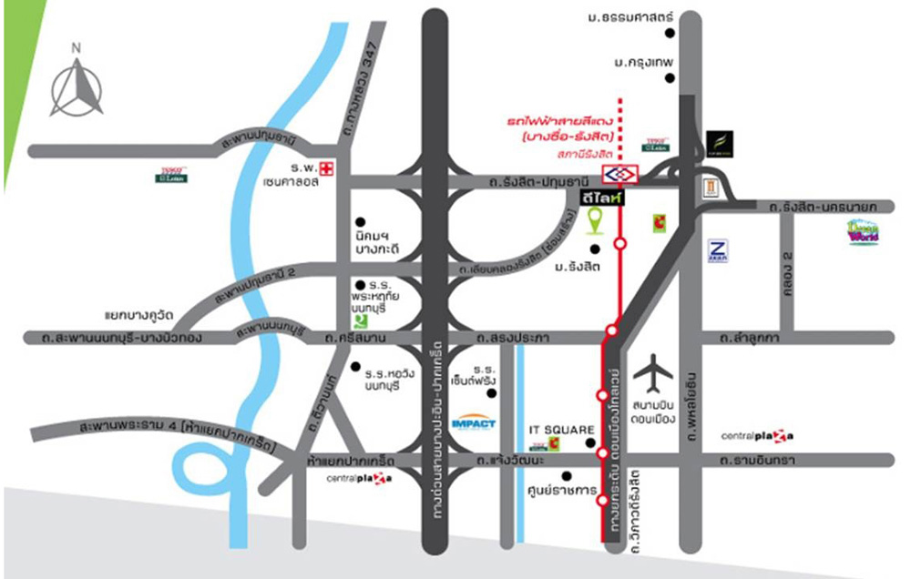 - ที่ตั้งโครงการ ถนนเลียบคลองรังสิต ตำบลหลักหก อำเภอเมือง จังหวัดปทุมธานี 12000