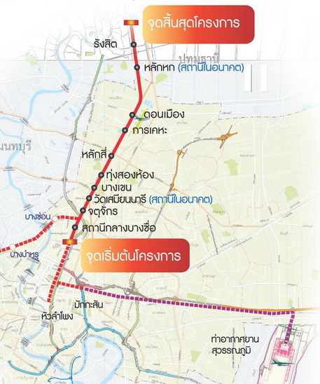 แผนที่แสดงแต่ละสถานีของรถไฟฟ้าสายสีแดง