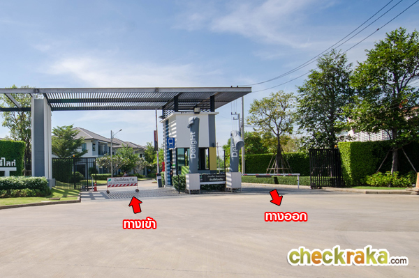 ซุ้มประตูทางเข้า-ออกมี รปภ. CCTV ที่สแกนคีย์การ์ดเข้า-ออกโครงการ ไม้กั้นกระดก และประตูบานเลื่อนเหล็ก