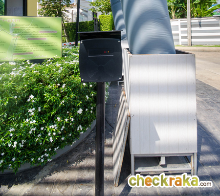 มีห้องสำหรับรปภ. กั้นตรงกลางระหว่างทางเข้าและทางออก