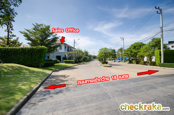 ผ่านประตูเข้ามาจะเป็นถนนทางเข้ากว้าง 18 เมตร มีเกาะกลางถนน ฝั่งซ้ายมือเป็นที่ตั้งของสำนักงานขาย