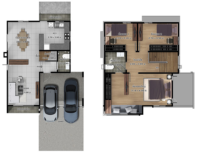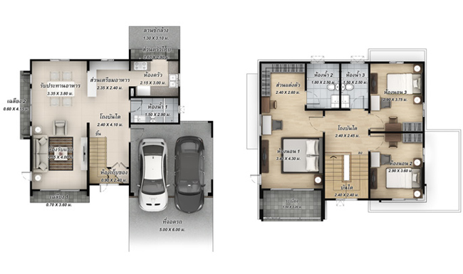 เรามาดูแปลนบ้านทั้งสองชั้นกันก่อนเลยค่ะ