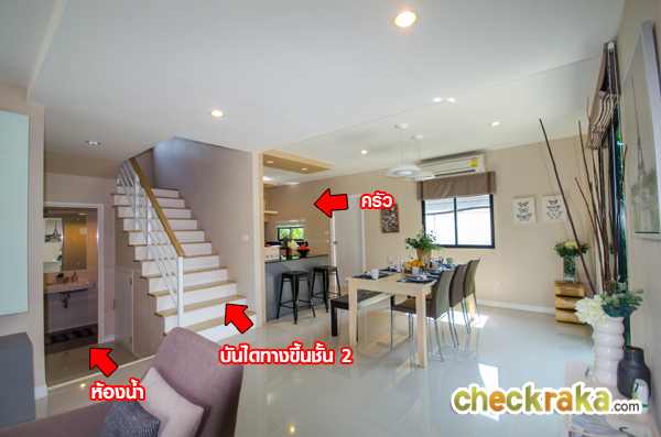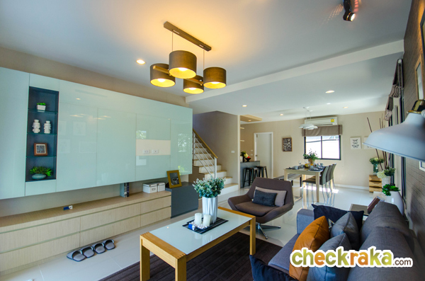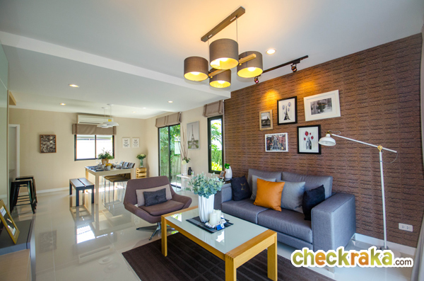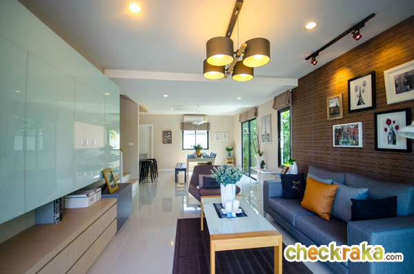 แบบบ้านเดี่ยว Linear B หลังนี้เป็นบ้านตัวอย่างพร้อมตกแต่งเฟอร์นิเจอร์ทั้งหลัง สังเกตได้ว่าตัวบ้านออกแบบ Modern