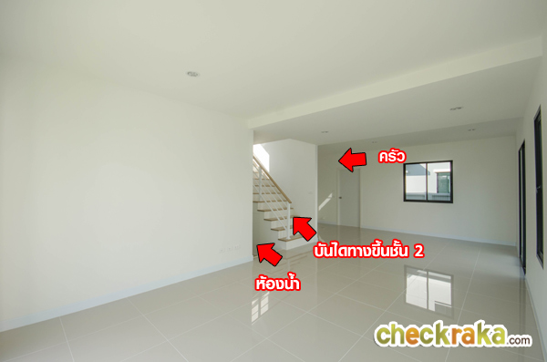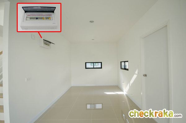 สำหรับบ้านเปล่าที่ส่งมอบลูกค้าจะเป็นห้องโล่งๆ แบบนี้เลยค่ะ ตู้ควบคุมระบบไฟจะติดตั้งอยู่ส่วนนี้ด้วยค่ะ