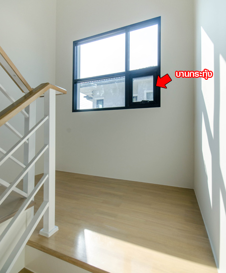 จากบ้านเปล่าในมุมเดียวกันจะเห็นขนาดของห้องและขนาดหน้าต่างบานเลือน บาน Fix ที่ยาวต่อเนื่องกัน