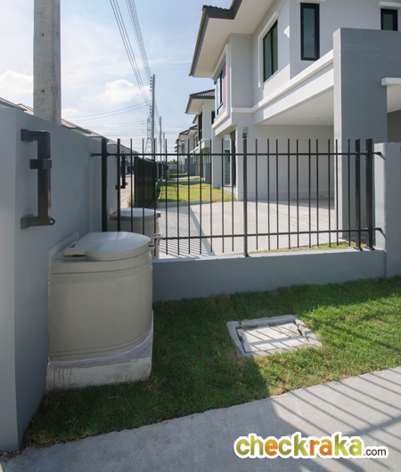 พื้นที่ด้านข้างบ้านที่ส่งมอบลูกค้าแต่ละหลังมีพื้นที่มาก-น้อยแตกต่างกันไป ติดตั้งปั๊มน้ำ แทงค์น้ำมาให้ครบ
