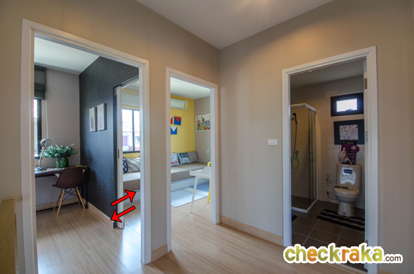 นอกจากนี้บ้านตัวอย่างยังเจาะผนังให้ทะลุกันระหว่างห้องนอน 1 กับห้องนอน 2 และติดตั้งประตูบานเลื่อนไว้