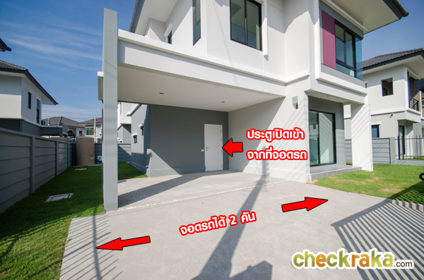 บ้านตัวอย่างแบบบ้านเปล่าจะเห็นพื้นที่จอดรถได้ชัดเจนขึ้น ว่าจากเสาหน้าบ้านตัวพื้นเป็นซีเมนต์ On Ground