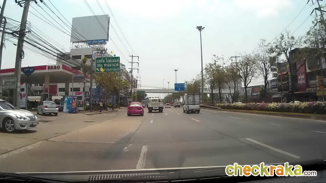 ลอดถนนวงแหวนฯ แล้วตรงไปเพื่อเข้าถนนปัญญาอินทรา