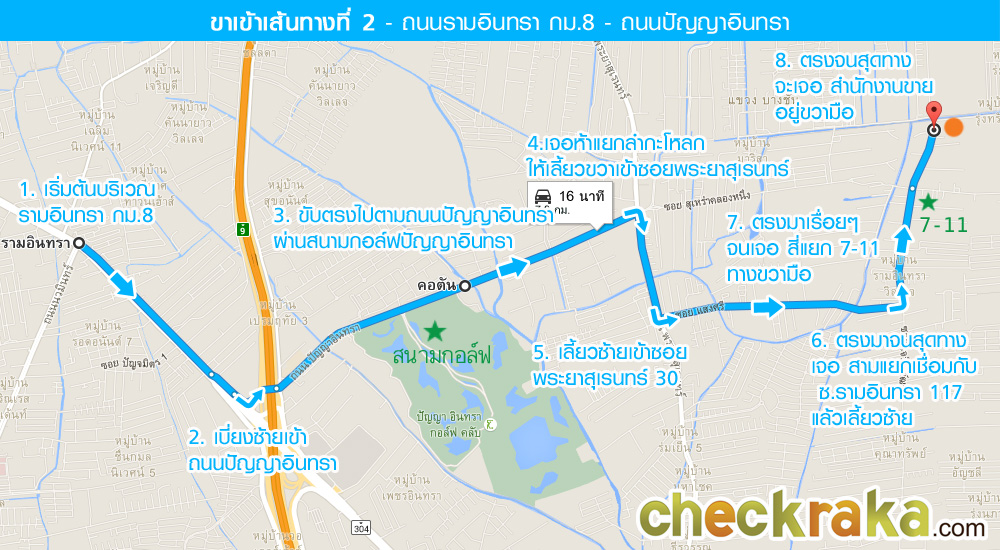 เส้นทางที่ 2 - ขาเข้าจากถนนรามอินทรา กม. 8 - ถนนปัญญาอินทรา