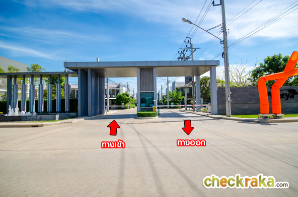ซุ้มประตูมี รปภ. ไม้กั้นกระดก CCTV บริเวณที่สแกนคีย์การ์ดเข้า-ออกโครงการ และรั้วแยกกับโครงการอื่นๆ