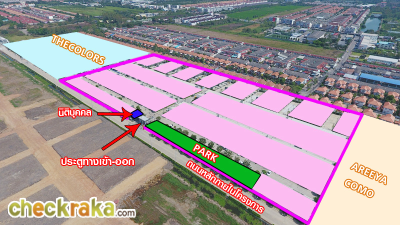 สำหรับโครงการ เดอะคัลเลอร์ส พรีเมี่ยม วงแหวน - รามอินทรา ที่เราพามาเยี่ยมชมในวันนี้ ตั้งอยู่บนแปลงที่ดินขนาดใหญ่กว่า 73 ไร่ ที่ทางบริษัท อารียา จัดสรรเอาไว้เพื่อสร้างสังคมที่อยู่อาศัยของอารียาขึ้นมา โดยที่ดินแปลงนี้ตั้งอยู่พื้นที่ถนนสุเหร่าคลองหนึ่ง (ซอย 15) ซึ่งมีจุดเด่นตรงที่เป็นแปลงที่ดินที่ยาวต่อเนื่องกัน มีถนนทางเข้าด้านหน้ากว้าง 20 เมตร และถนนเมนกว้าง 16 เมตร ภายในที่ดินผืนนี้ แบ่งออกเป็น 3 เฟสหรือ 3 โครงการ คือ AREEYA COMO บ้านเดี่ยว และบ้านแฝด 2 ชั้น, TheColors Premium ทาวน์โฮม 2 ที่จอดรถ และ TheColors ทาวน์โฮม 1 ที่จอดรถ และยังมีคลับเฮ้าส์ขนาดใหญ่ ฟิตเนส และสระว่ายน้ำระบบเกลือบนพื้นที่กว่า 2 ไร่ สำหรับอำนวยความสะดวกสมาชิกในโครงการอีกด้วย