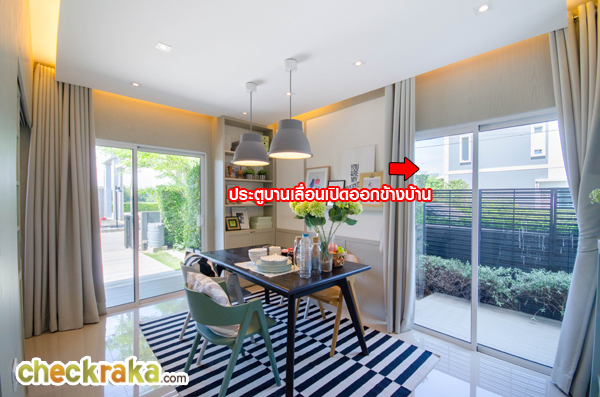หน้าต่างบานเลื่อนรับแสงธรรมชาติเข้ามาภายในบ้าน