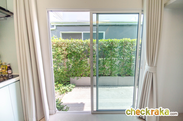 หากดูเปรียบเทียบกับบ้านเปล่าจะเห็นหน้าต่างบานเลื่อน เมื่อเปิดออกไปจะเป็นวิวหน้าบ้าน