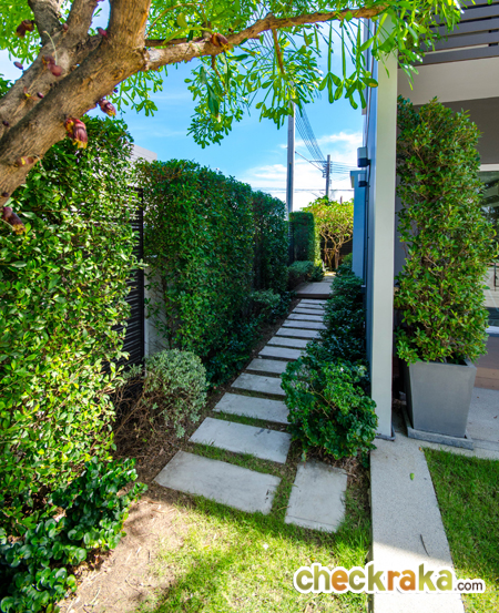 บรรยากาศสวนเป็นแนวยาวขนานไปกับแบบบ้าน เพิ่มความร่มรื่นให้กับโครงการ