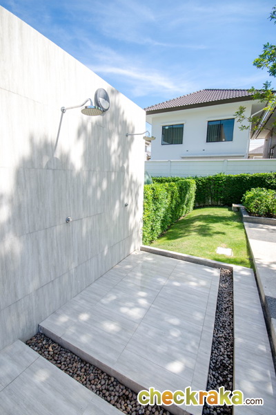 ลานซักล้างหลังบ้าน ในส่วนของบ้านตัวอย่างจะลงต้นไม้ จัดสวนไว้ให้ ส่วนบ้านเปล่าจะเป็นคอนกรีตเสริมเหล็ก