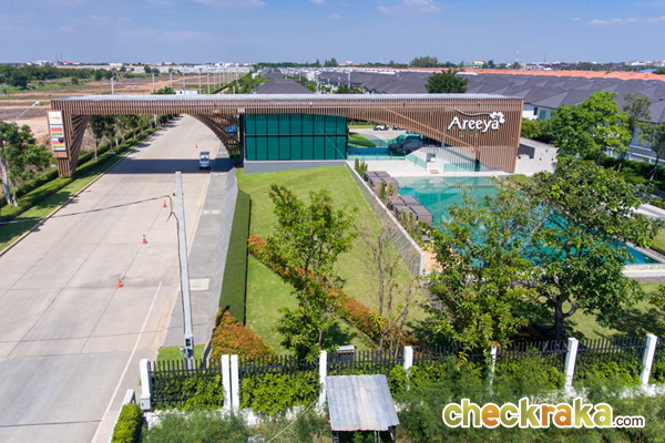 ป้ายด้านหน้าทางเข้าแสดงให้เห็นถึงโครงการด้านในทั้ง 3 โครงการ ได้แก่ AREEYA COMO บ้านเดี่ยว