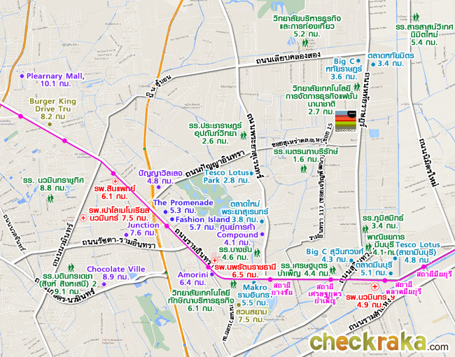 ภาพแผนที่โครงการแจกแจงให้เห็นระยะใกล้-ไกลของโครงการกับสถานที่