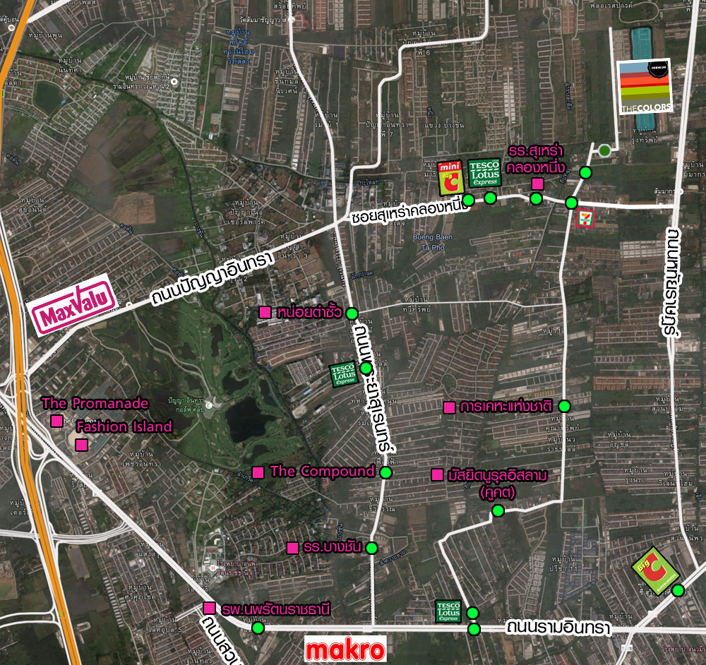 - ที่ตั้งโครงการ ถนนสุเหร่าคลองหนึ่ง (ซอย 15) / พระยาสุเรนทร์ 30 แขวงบางชัน เขตคลองสามวา กรุงเทพมหานคร 10510