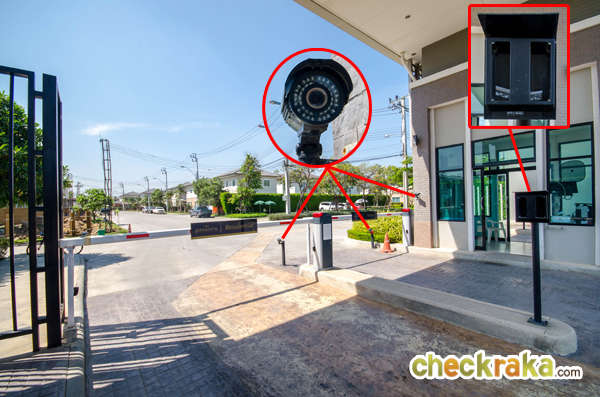 ตรงซุ้มประตูทางเข้ามี รปภ. ไม้กั้นกระดก CCTV 3 จุด ที่สแกนคีย์การ์ด และมีห้องสำหรับรปภ. กั้นตรงกลาง