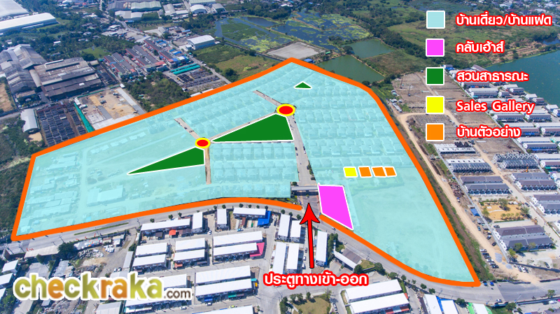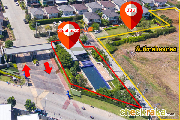 ขอบเขตโครงการโดยรวม สวนสาธารณะ คลับเฮ้าส์ สำนักงานขาย บ้านตัวอย่าง และทางเข้า-ออก