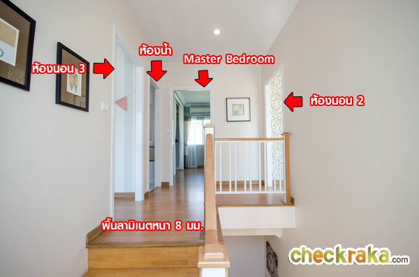ขึ้นมาที่ชั้น 2 จะพบกับฟังก์ชั่นบ้านของห้องต่างๆ ตามรูปนี้ค่ะ พื้นชั้น 2 เป็นพื้นลามิเนตหนา 8 มม.