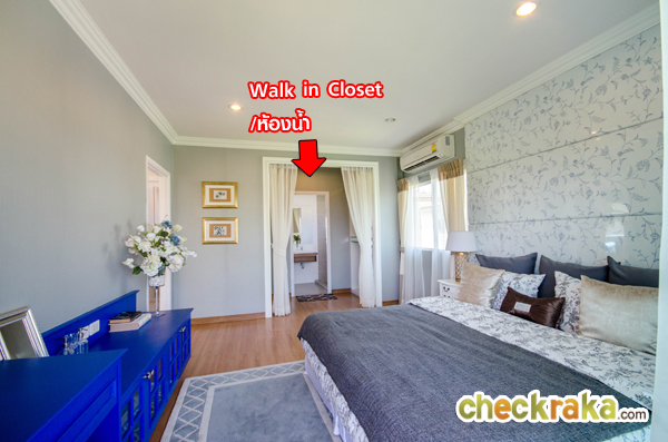 สำหรับเจ้าของบ้านท่านไหนอยากได้ห้องที่เป็นสัดส่วน จะทำประตูบานเลื่อนกั้นตรงส่วน Walk in Closet