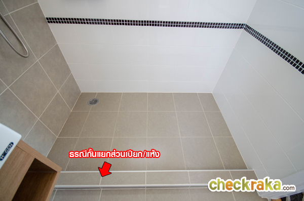 ก่อธรณีกั้นยกสูงจากพื้นเล็กน้อยเพื่อแยกส่วนเปียก/แห้ง ปูกระเบื้องพื้น ขนาด 12" X 12"