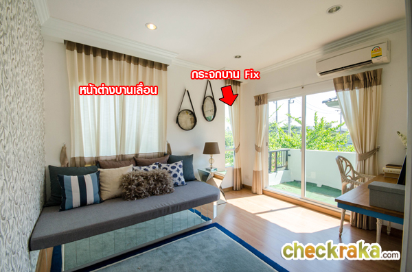 มีหน้าต่างให้ถึง 1 จุด และกระจกบาน Fix 1 จุด ช่วยเพิ่มความสว่างให้ห้อง นอกจากนี้ยังมีประตูบานเลื่อน