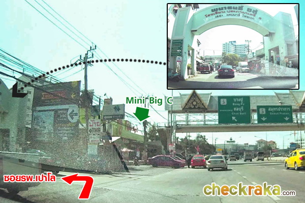 ขาเข้าโครงการ เส้นทางที่ 2 มาจากถนนแพรกษา เข้าทางซอยแพรกษา 5