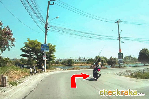 จากนั้นให้เข้ามาตามเส้นทาง จะเจอโค้งซ้ายโค้งแรก