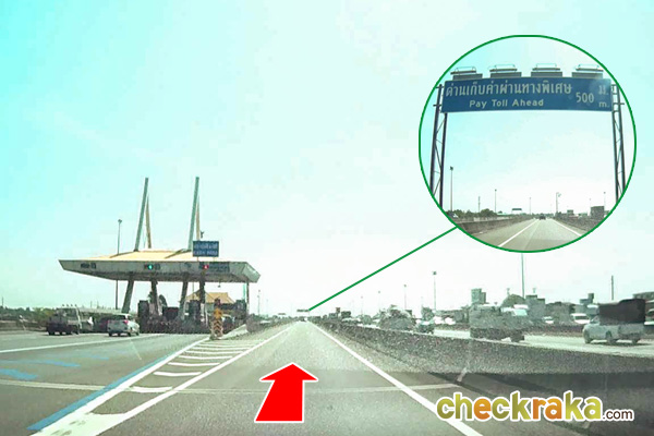 เข้าช่องทางขวา ด้านหน้าจะมีป้ายบอกว่าจะมีด่านเก็บค่าผ่านทาง