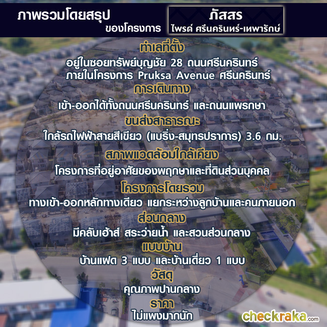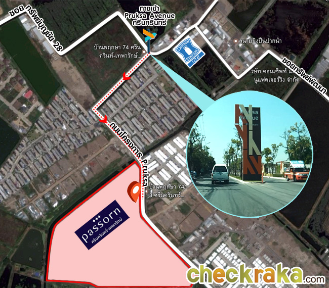 จากทางเข้า Pruksa Avenue ศรีนครินทร์ เข้ามาตามเส้นทางอีกประมาณ 400 เมตร