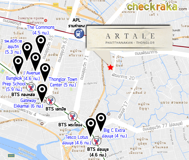แผนที่โครงการ อาเทลล์ พัฒนาการ - ทองหล่อ (Artale Pattanakarn - Thonglor)